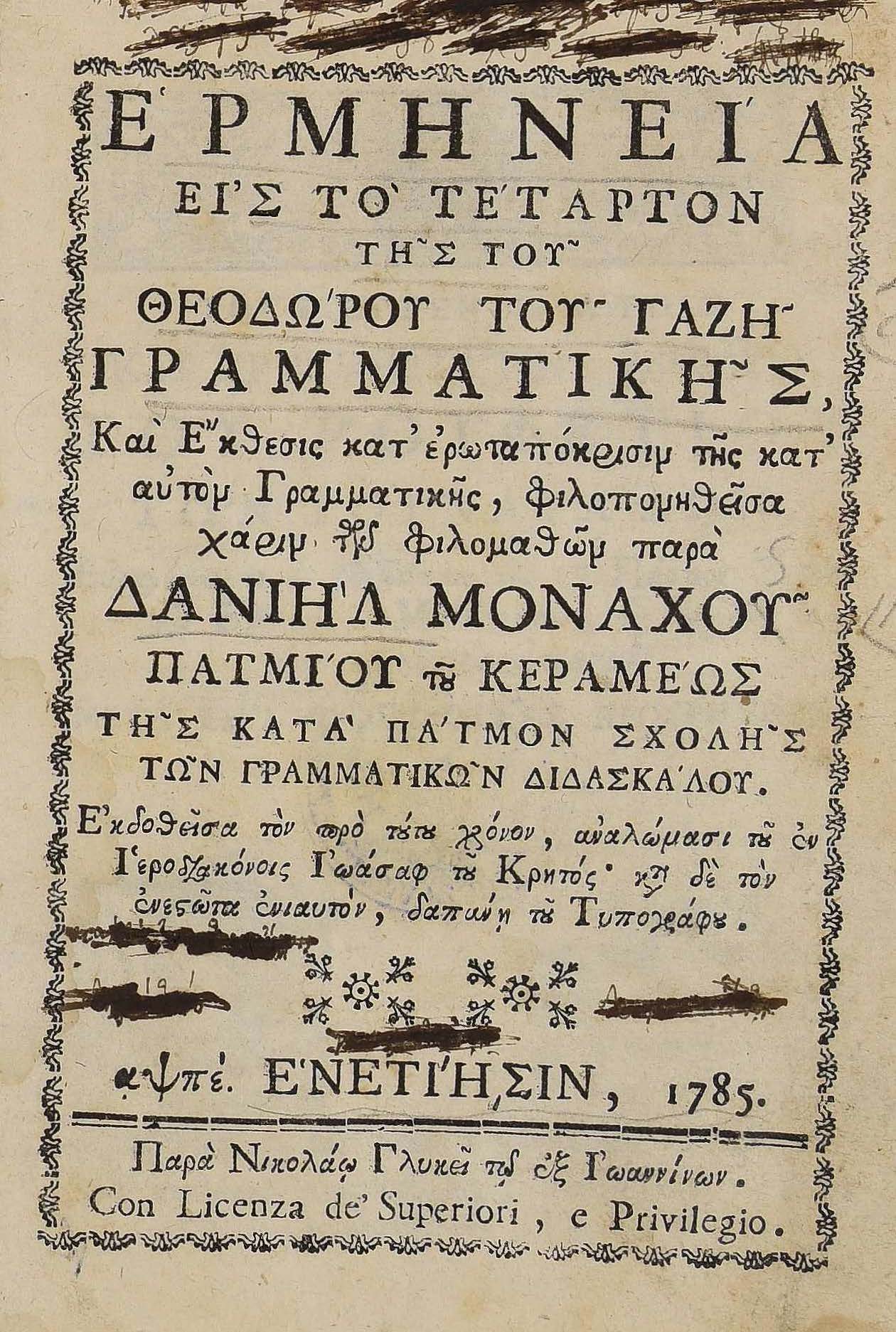 Назва: | Ερμηνεία εις το τέταρτον της του Θεοδώρου του Γαζή Γραμματικής, και Έκθεσις κατ' ερωταπόκρισιν της κατ' αυτόν Γραμματικής |