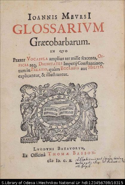 | Назва: | Ioannis Meursi Glossarium Graecobarbarum |